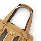 This Coach handbag is a stunning vintage find! The retro turnlock design adds a classic touch, while the spacious interior fits all your essentials. The leather is durable yet soft, and the striped detailing gives it a unique flair. Perfect for everyday use or special occasions—love the shoulder strap for hands-free convenience. A must-have for any Coach lover!