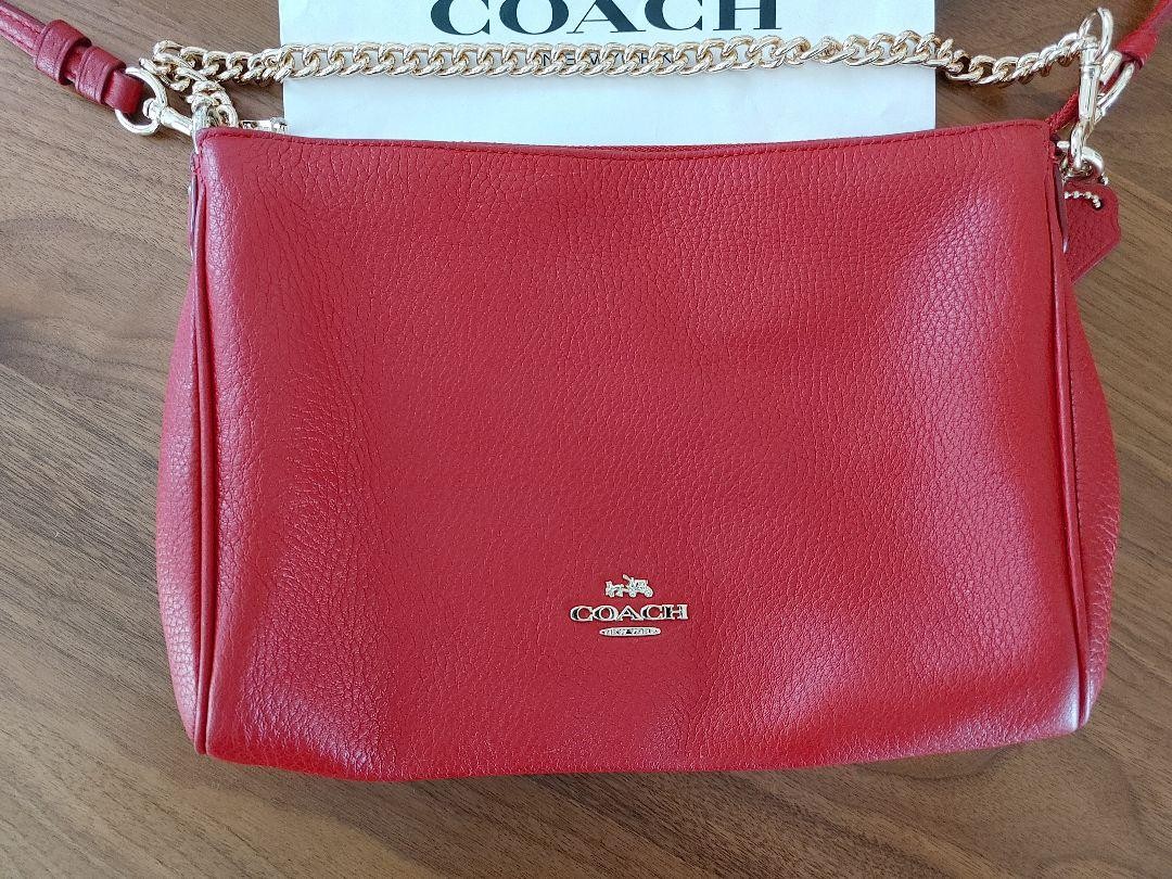 Coach Red Leather Shoulder Bag with Gold Chain Near Mint Condition /Used Features Coach Shoulder Bag/Handbag in excellent condition. Crafted from high-quality exterior material with a stylish design. Features a spacious interior, durable handle/strap material, and elegant hardware color. Perfect for everyday use or special occasions. Made in Japan, showcasing craftsmanship and timeless style. Item Specifics: C:Exterior Material: Leather C:Style: Shoulder Bag C:Exterior Color: Black C:Department: Women C:Product Line: Coach C:Handle/Strap Material: Leather C:Lining Color: Beige C:Lining Material: Fabric C:Handle/Strap Color: Black C:Size: Medium C:Hardware Color: Gold C:Closure: Zipper C:Accessories: None C:Vintage: No C:Bag Width: 30cm C:Bag Height: 20cm C:Bag Depth: 10cm C:Customized: No C:Theme: Classic C: Specifications Brand Coach Country Japan Department Woman Theme Bag Item Title Coach Shoulder Bag/Handbag Payment Supports managed payments Please pay within 5 days after auction is finished. About Us We are located in Japan. It's our pleasure to make you happy by proposing our recommend item. If you have any questions or request about items, please feel free to ask us. International Buyers - Please Note: -Import duties, taxes, and charges are not included in the item price or shipping charges. These charges are the buyer's responsibility. -Please check with your country's customs office to determine what these additional costs will be prior to bidding/buying. -These charges are normally collected by the delivering freight (shipping) company or when you pick the item up - do not confuse them for additional shipping charges. -We do not mark merchandise values below value or mark items as - gifts - The US and International government regulations prohibit such behavior. Thank you for your understanding.