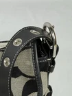 πππ VTG COACH D1026 F15171 BLACK GRAY Signature C LTR 2WAY Shoulder Crossbody. Preowned, Vintage Bag, in GREAT CONDITION. PLEASE SEE PICTURES. The VTG Coach D1026 F15171 Black & Gray Signature C Canvas with Leather trim and Shoulder/Crossbody Strap with adjustable Buckle Strap. 2WAY Shoulder & Crossbody bag is a large semi-circle shaped bag with a turn lock closure. The bag features a black leather shoulder strap and silver hardware accents, including grommet, buckle, and stud details. The exterior is a black and gray jacquard canvas fabric with leather trim, and the interior is lined with purple fabric. This vintage Coach handbag is designed for travel, weddings, parties, casual outings, formal events, work, and business, making it a versatile and stylish accessory for women. The bag also includes various pockets, an outside mobile phone pocket, inner large zipper pocket, 2 Slip Pockets, a center divider, and a stain-resistant, water-resistant finish. The image shows a Coach Signature Canvas Black and Gray Monogram Shoulder Bag. The bag is made with a signature coated canvas and leather trim. It features a turn-lock closure and a single shoulder/Crossbody strap. This specific bag has the model number D1026 F15171. The bag is a vintage design and is available pre-owned. ***PLEASE LOOK AT ALL OF OUR PICTURES FOR CONDITION, MATERIALS AND MEASUREMENTS. ***WE GUARANTEE THAT OUR ITEMS ARE AUTHENTIC OR WE GIVE YOU YOUR MONEY BACK. *** We combine shipping to save you money on multiple items. You pay the highest shipping on one item and the next three items are $1.50 shipping per item. The 5th item will start the cycle again. We hope this helps you. π Inventory #0066/525 THANK YOU FOR CONSIDERING OUR ITEMS AND PLEASE CHECK OUT OUR EBAY STORE - ebay.com/str/morinfashions ***Please add us to your list of βFavorite EBay Storesβ. Just click the Heart next to Morin Fashions so you can find us again! π We are not affiliated with or represent any other company than Morin Fashions. Thanks Again, HAVE A BLESSED DAY! πππ ebay.com/str/morinfashions