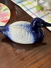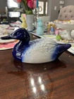 209 -Vintage Ceramic Cobalt Blue & White Duck StaffordshireMarked Staffordsmire Th is is in used preowned condition. Idid see the beak has been repaired but you cannot tell unless you look veryclosely. See high quality pictures for details. I will gladly combine shipping on multiple items, just ask for details. Shipping via UPS. My goal is 100% customer satisfaction so please contact me with anyproblems before leaving negative feedback Unlike some sellers – I do NOT over charge for shipping – all shipping iscalculated by weight via UPS. Shippingcharges listed are for the Continental United States ONLY! Many of the items in my store are very light and there are min. chargesfor shipping so please browse, fill your cart and inquire about a quote I do my best to describe the items I’m selling, but I am not an expert,so please feel free to ask questions. An extremely high percentage of my items are vintageand/or antique Vintage items are objects made prior to 1990 and havesmaller flaws indicative of normal use and age Please examine the photos carefully to make sure the itemis acceptable to your expectations prior to buying Returns accepted with buyer paying shipping cost if item Please take a look at my store on Ebay: Mygrandmahadthat1 Seller Names: Mygrandmahadthat1 Mygrandmahadthat2 and Mygrandmahadthat3