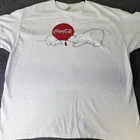 This vintage Coca-Cola Atlanta T-shirt features a charming polar bear graphic. Crafted by Hanes, it offers a comfortable fit in size XL. • Short sleeves • Cotton material • White color • Polar bear graphic • Coca-Cola Atlanta design • Crew neck • Made in Haiti • Hanes brand • Size XL Top to bottom: 29 inches Pit to pit: 23 inches