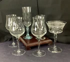 6 Cocktail Martini Tall Optic Wine Glass MCM Curated Stemware Barware Mismatch. Gorgeous