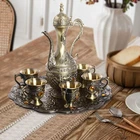 Vintage Coffee Pot And Cups Set, Tea Pot Set, 6 Teacups,1 Teapot, And 1 Tea Tray Description If you are a tea enthusiast, then our tea set can be an ideal choice for you. Our tea set is made of high-quality materials that are solid and durable. The vintage beautiful carvings show generosity and luxury. The complete set fully meets your tea-tasting needs. It is not only practical but also a beautiful home decoration or collection. Key Features Made to Last: This product is made of high-quality zinc alloy material, treated with an electroplating process, solid and durable, drop and wear-resistant, and not easy to fade and deform. Complete Set: This set includes 6 teacups, 1 teapot, and 1 tea tray, which can fully satisfy your tea-tasting needs, you don't need to buy them separately. Exquisite Appearance: With delicate relief patterns and yellow diamond-like embellishments, this product is vintage and elegant, showing the palace-like luxury and making it an ideal collection. Special Decoration: It can be used to decorate your tea set, coffee table, or dining table to enhance your taste. When you are having a drink, tea, or coffee with your friends and guests, this teapot set can attract the attention of your guests and become the center of discussion. Large Capacity: The 7.44oz teapot capacity and six teacups(each 0.5oz) will satisfy you and your family's tea-sipping needs at once. Assembly-free : This product does not require any assembly, so you can use it after cleaning it, saving you time and labor. Effortless Cleaning: It has a simple structure, so you only need to wipe the dust or residue with a towel or rinse it with water. Ideal Gift: With good performance and an exquisite appearance, it can be used as an ideal gift for newlyweds, moving into a new house, Father's Day, birthday, Thanksgiving, etc. Good Customer Service: We aim to provide quality products and services. If you have problems, please feel free to contact us. We will reply and solve the problem for you as soon as possible. Details Practical Handles: The teapot and teacups come with a handle design that makes it easy for you to hold and use. Tea Tray: This design is convenient for you to organize and arrange teapots and teacups, which are not only beautiful but also do not take up much space. Semi-revealing Teapot Lid: This design facilitates you to add tea and also protects the cleanliness of the tea. Application This product is suitable for serving tea, coffee, wine, cappuccino, milk tea, whiskey, brandy, and mixed cocktails. Specification Color: Bronze+Yellow Material: Zinc Alloy, Plastic Process: Electroplating Style: Vintage Assembly Required: No Mounting Type: Tabletop Teapot Capacity: 220ml/7.44oz Each Teacup Capacity: 15ml/ 0.5oz Teapot Size(W*H): 13*22cm/5.12*8.66in Each Teacup Size(W*H): 6.5*5cm/2.56*1.97in Tea Tray Diameter: 24.5cm/9.65in Package Size: 27*26*9cm/10.63*10.24*3.54in Gross Weight: 2.2kg/4.85lbs Net Weight: 2kg/4.41lbs Package Included 1* Teapot 6* Teacups 1* Tea Tray Notes Please confirm that the size meets your needs before ordering. Please note that this tea set is not dishwasher safe. Please allow the slight color difference caused by the shooting light and 1-3cm error due to manual measurement, and make sure you do not mind before ordering. Payment Delivery details Terms of sales About us Contact us Payment We accept ebay payment 。 Fees such as import duties, taxes are not included in the item price or shipping costs. These charges are the buyer's responsibility. Delivery details Shipping: 2-9 working days to: USA Terms of sales We maintain high standards of excellence and strive for hundred percent customer satisfaction. Feedback is very important to us. We hope that you contact us immediately before you give neutral or negative feedback, so that we can address your concerns. It is impossible to address issues if we do not know about them! About us Your satis faction is our ultimate goal. We work hard to earn your trust and future business. Our certified technicians have tested each item before shipping. The unit comes with 1 year limited warranty on all manufacturing defects. a) If you receive a defective item, you may return it or ask for a discount. Please contact us within 14 days after you receive the package. b) What you returned must be intact and in its original packaging as re? u. Customer is responsible for shipping costs of the returned item. c) We will cover the cost of shipping back t with the shipping rate indicated in the registration page. We will send you a new unit or refund the full payment you paid. Thank you. Contact us Business Hour Business Hour: Monday To Friday: 8:30 AM to 5:00 PM (Beijing China time) Due to time zones, our reply to your questions may not be immediately. But within above working time, we will reply your email within 24 hours. If it's non-workdays, please kindly be patient and wait till Monday. Please contact us with ebay message. Please feel free to contact us if you have any questions. Monday To Friday: 8:30 AM to 5:00 PM (Beijing China time) Due to time zones, our reply to your questions may not be immediately. But within above working time, we will reply your email within 24 hours. If it's non-workdays, please kindly be patient and wait till Monday. Please contact us with ebay message. Please feel free to contact us if you have any questions.