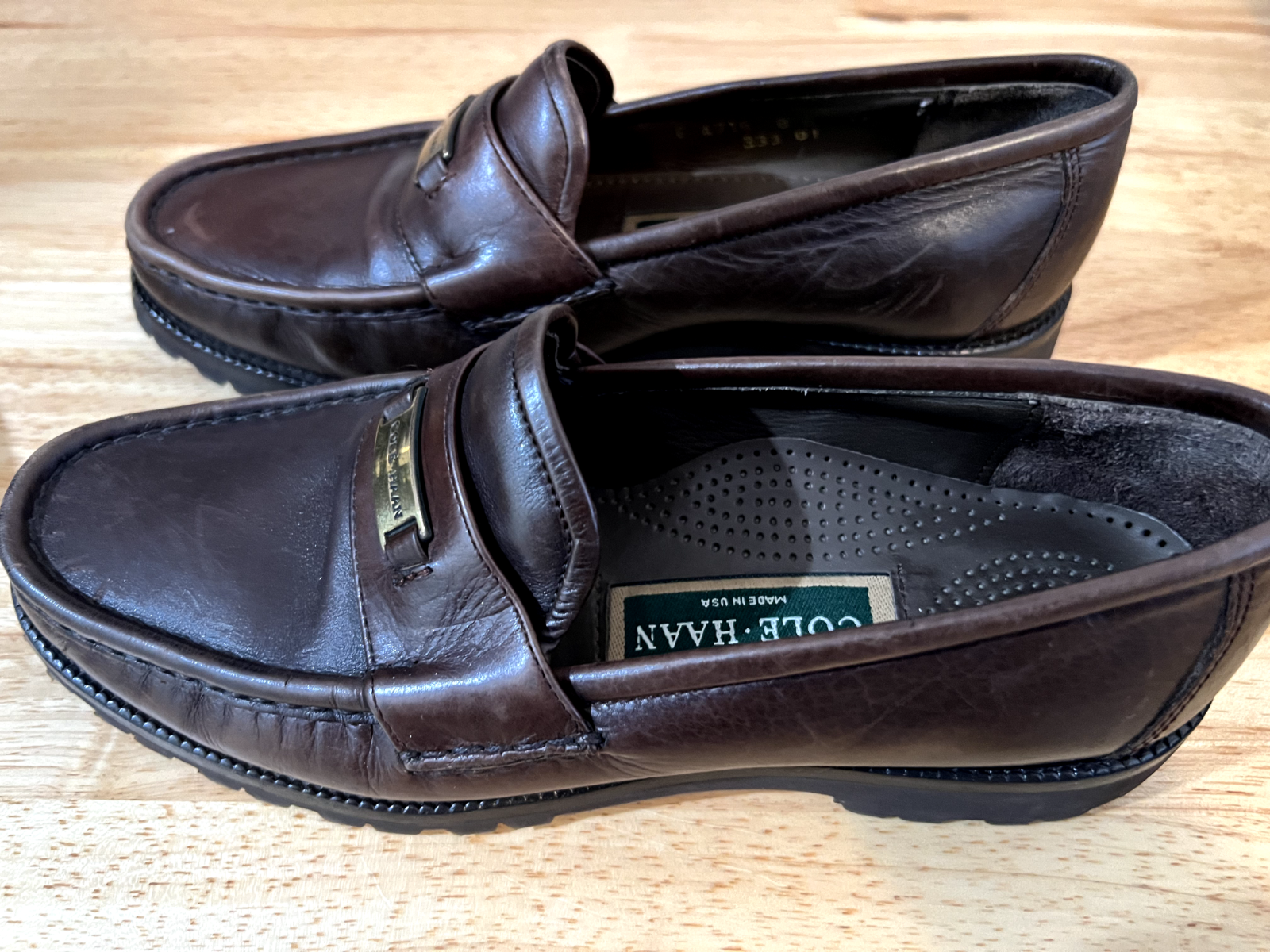 The product is a pair of vintage Cole Haan women's brown leather loafers in size 8. These classic shoes feature a flat sole and a stylish loafer design, perfect for adding a touch of elegance to any outfit. The high-quality leather material ensures durability and comfort for everyday wear.