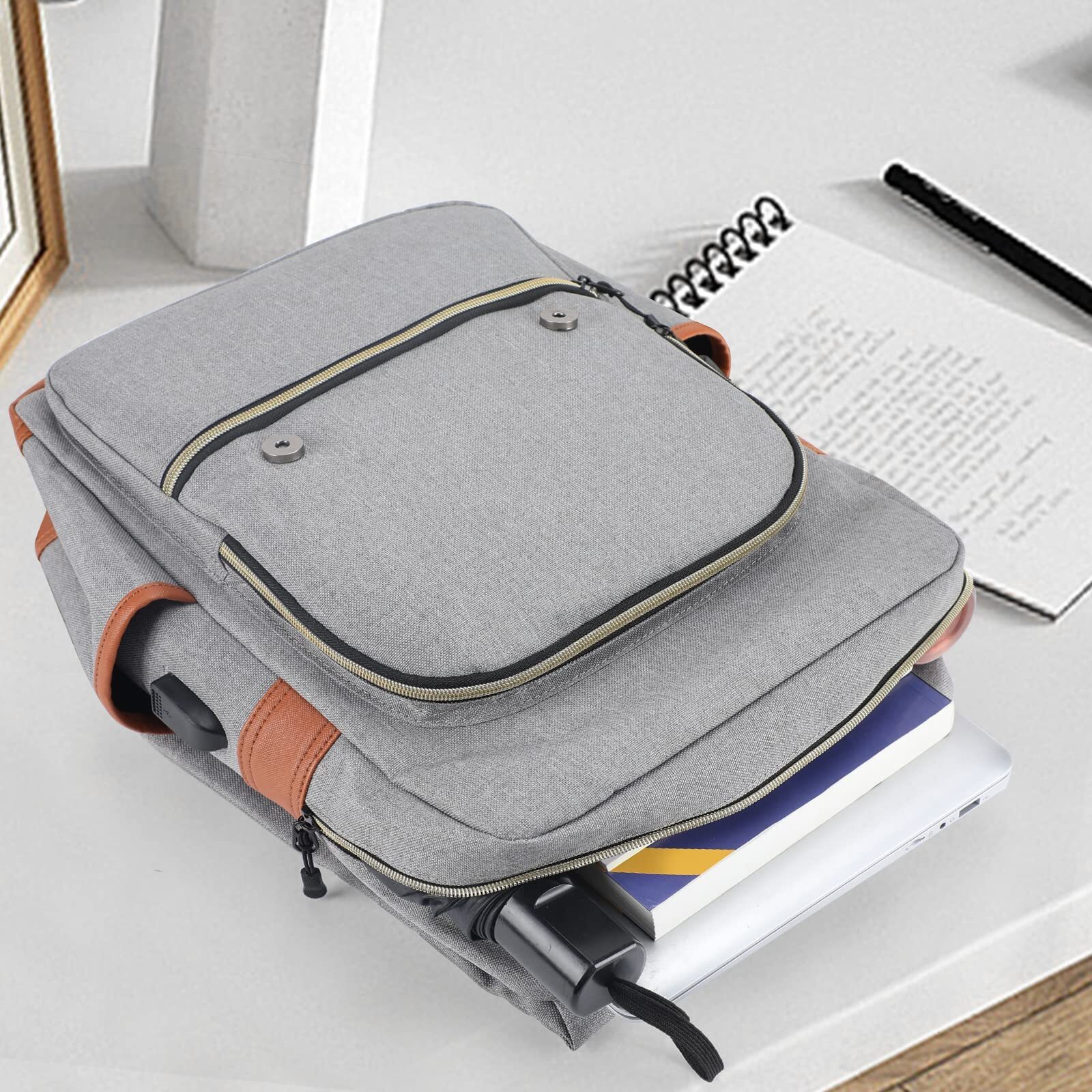 PREMIUM QUALITY MATERIAL - vintage backpack for men is made of premium lightweight tear resistant Oxford fabric and quilted polyester linear. Simple, elegant and vintage casual daypacks. Dimensions: 11.4"L x 15.8"H x 4.1"W; Capacity: 30L COMFORTABLE BACKPACK - Ensuring long-lasting performance, this vintage rucksack features adjustable padded shoulder straps and an ergonomic back panel, ensuring comfort even when carrying heavy loads. Ideal for students, workers, and travelers etc LARGE CAPACITY - This travel backpack features 6 compartments for efficient organization. 2 front zipper pockets can hold small items such as ID card, keys, earphone, etc. The main zipper compartment can hold notebook, wallet, pen, etc. Another padded main compartment comfortably fits a 15.6-inch laptop and books. And the two side pockets of the large school bookpack can put in the bottle and umbrella. Large capacity design make your life more comfortable and convenient USB CHARGING PORT - laptop backpack has an external USB charging port, gives more convenient way to charge your phone while walking. Please noted to carry a power bank when charging as the backpack doesn't power itself, the USB charging port only offers an easy access to charge VERSATILE LAPTOP BACKPACK - With its unique vintage design and fashionable color matching that never goes out of style. This school backpack also makes an excellent choice for family, friends, or yourself, ideal for occasions like Thanksgiving, Christmas, New Year's, or back-to-school. The lightweight stylish backpack serves as a versatile laptop bag, teacher bag, business bag, or work bag, meeting all your daily needs.