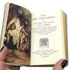 Vintage Pocket Collins Gift New Testament Leatheroid Cover Original Box MO4 In used vintage condition with inscription from 1963. Box and book have wear from use and age. Please see photos for condition details. Measures approximately 4.5" x 3"