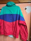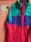 Pit to pit 26 Length 28 This Vintage Columbia Men's Large Radial Sleeve Zip Parka Ski Snowboard Jacket is a retro piece with a stand-up collar and full zip closure. Made of nylon with polyester insulation, this mid-length jacket is perfect for winter, fall, and spring seasons. It features a hood, lined interior, and pockets for functionality. The multicolor design with a 90s ski theme adds a nostalgic touch to this stylish parka, making it a great choice for skiing, cross country skiing, and snowboarding activities.