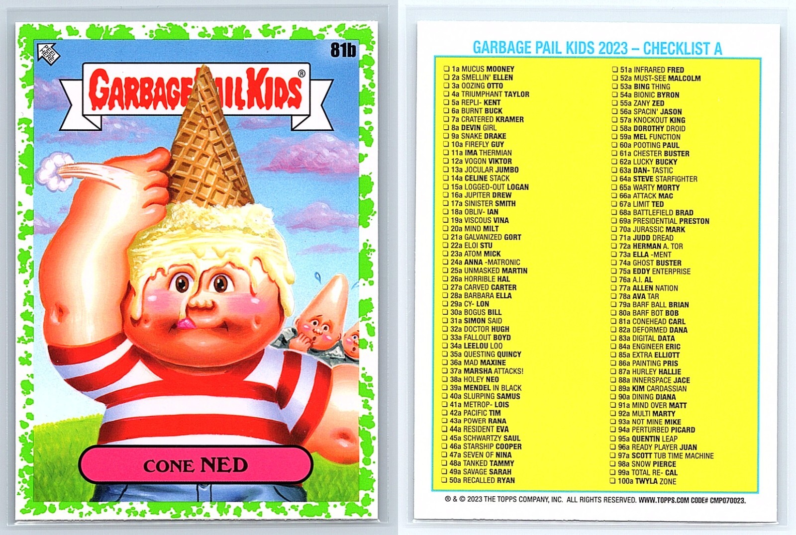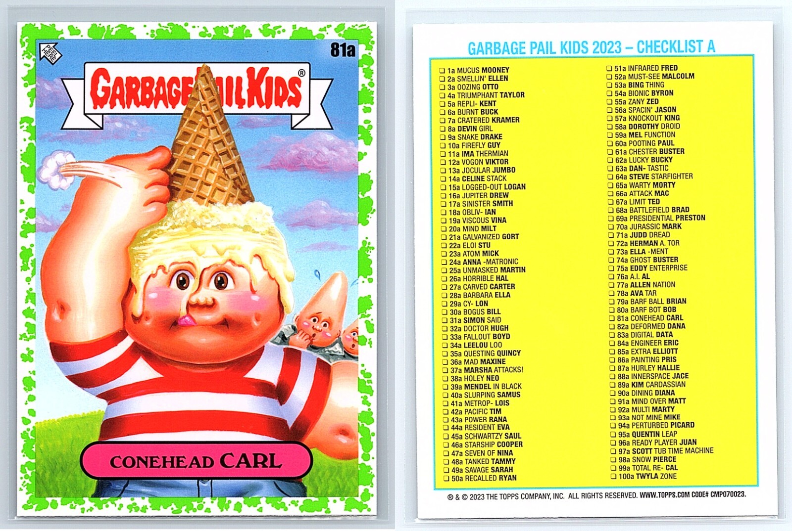 2023 Topps Garbage Pail Kids Series 2 - Intergoolactic Mayhem 2 Card Set - Includes BOTH cards pictured: Conehead Carl 81a & Cone Ned 81b! Perfect for Christmas & Birthday Gifts, Gags and Fun! Check out our Seller Page for more GPK Cards! Images are representative of cards received. These cards are Pack FRESH and in Near Mint (centering and condition) or Better! Shipping Information ***Will ship FAST (I drop off orders at USPS daily before last pickup except Weekends) Item will ship properly in a TOP LOADER/Sleeve with TRACKING! I have years of experience shipping thousands of cards successfully all over the world. ***In order for us to provide affordable GPK Global option, International Shipping will ship via USPS International Basic Mail and may not have tracking depending on value of order.*** Combined Shipping discounts for International!! Affordable rates / Safest Delivery! See reviews **I am not responsible for any custom fees/Import taxes etc. Please contact your local country contacts for any additional Import fees. ***Please FOLLOW our GPK Seller EBAY STORE for exclusive Deals and Promotions.***