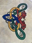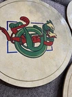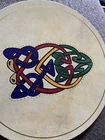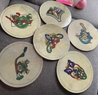 Vintage from 1980s This is a vintage set 6 Connemara Bodhrans, round placemats (or possibly large trivets). These have Celtic designs and are meant to depict the Bodhrans drums of Connemara, Ireland. These have cork on the bottom Please ask for more images if you'd like to see them. These were made in Ireland. They measure just under 8.5 inches across.
