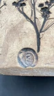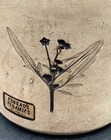 This vintage vase (1970s) from St. Croix, U.S. Virgin Islands artist Conrad Knowles is a unique piece of art pottery. It features impressed floral patterns from local St. Croix flowers and uses local clay. The detail of the flower prints is exquisite. The vase has a height of 5.5 inches and a width of 3.75 inches, weighing 1 pound and 1.5 ounces. It has a matte light brown exterior with the flower imprints highlighted in black, and a glazed white majolica inside, preparing the vase to hold water. The vase has a natural feel and presentation. It is perfect for decorative purposes as well as being a functioning vase. The vase is in very good used condition. There is one chip on the underside of the rim, but otherwise has no cracks or additional chips. There are no signs of wear. There is an original sticker attached to the vase, a maker's mark impressed on the lower rim, and Mr. Knowles' design shop impressed on the underside. There is an old flyer from Conrad's Ceramics included with the vase. It has a map on one side and a biography of Mr. Knowles on the other side.