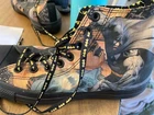 Step up your sneaker game with the Rare Converse Chuck Taylor All Star Hi Batman sneakers. These iconic high tops blend style and comfort, featuring a vibrant multicolor design that pays homage to the legendary Batman franchise. The durable canvas upper ensures longevity while providing a breathable fit suitable for any unisex adult wardrobe. Crafted with the quality you expect from Converse, these athletic sneakers are a standout piece from the Chuck Taylor All Star product line. Whether you're adding to your collection or looking for a bold statement shoe, these sneakers offer a unique combination of fashion and function that's hard to overlook. Mens Size 8 Womans size 10 Unisex