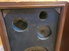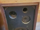 Sounds plays out of all drivers but the woofers on the speakers where the midrange/voices play out of the cone sound scratchy/ distorted and probably need to be fixed or replaced. The speaker boxes are in rough shape and both speakers need grills. The one speaker looks like someone could get away with restoring it while the other speaker box has deep scratches and a parts missing off some of the corners. Both speakers have that distinct 70s vintage sound and I think would be worth restoring to the right individual.