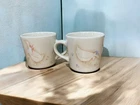 See pictures. There is a stain in the bottom of one of the mugs. Unable to get it off. Add a touch of vintage charm to your collection with this set of four Corning Country Goose Promenade coffee and tea cups. These limited edition mugs feature a round shape with a goose pattern and are made of durable, break/chip-resistant fused glass. Each mug has a 3-inch diameter and height, with a comfortable handle for easy grip. Not only are these mugs functional for everyday use, but they are also decorative with a glossy finish and printed backstamp. They are microwave and dishwasher safe for easy maintenance. Perfect for all occasions, these Corelle brand tea mugs are an original production from the United States and are a must-have for any collector.