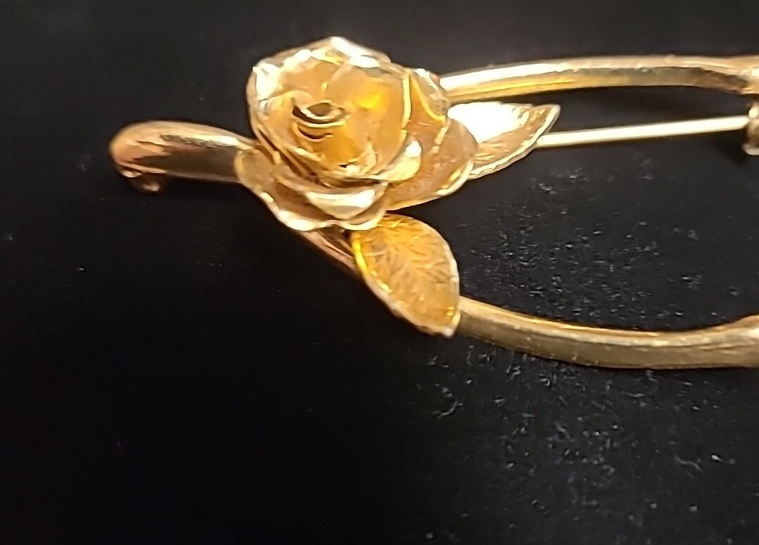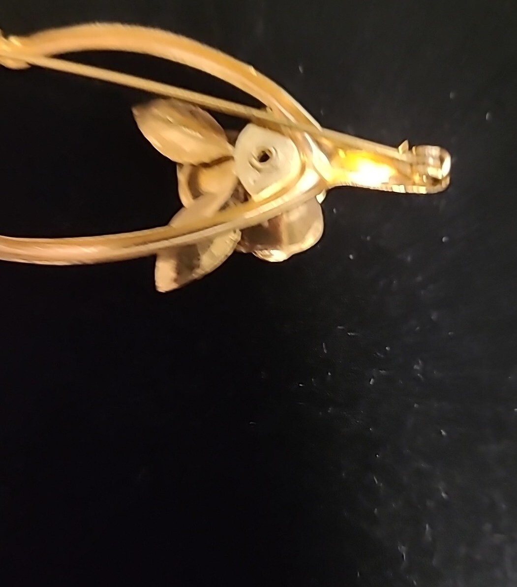 Add a touch of vintage sophistication to your outfit with this beautiful Coro goldtone brooch. The lucky wishbone rose design makes it perfect for special occasions like Christmas, anniversaries, and birthdays. The brooch is signed and features a stunning pink main stone color that complements the gold base metal. This vintage piece is an absolute must-have for any collector and will make an excellent addition to your jewelry collection. Bid with confidence and make this Coro brooch yours today!