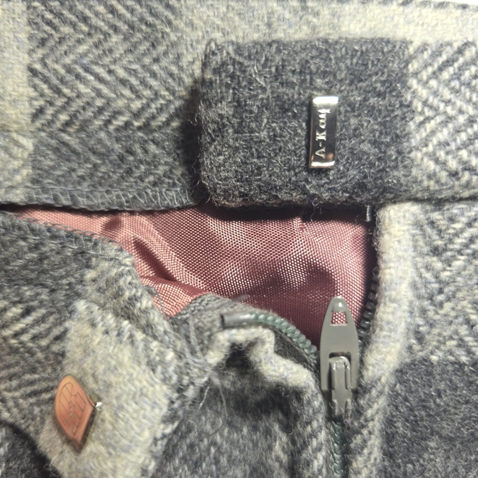 This plaid wool skirt by Country Suburbans combines classic style with durability. Ideal for professional or casual wear, offering comfort and elegance. • 100% pure wool material • Hidden side zipper with clasp • Fully lined with a satin interior • Professional dry clean recommended • Mid-length design Waist = 15 inches across