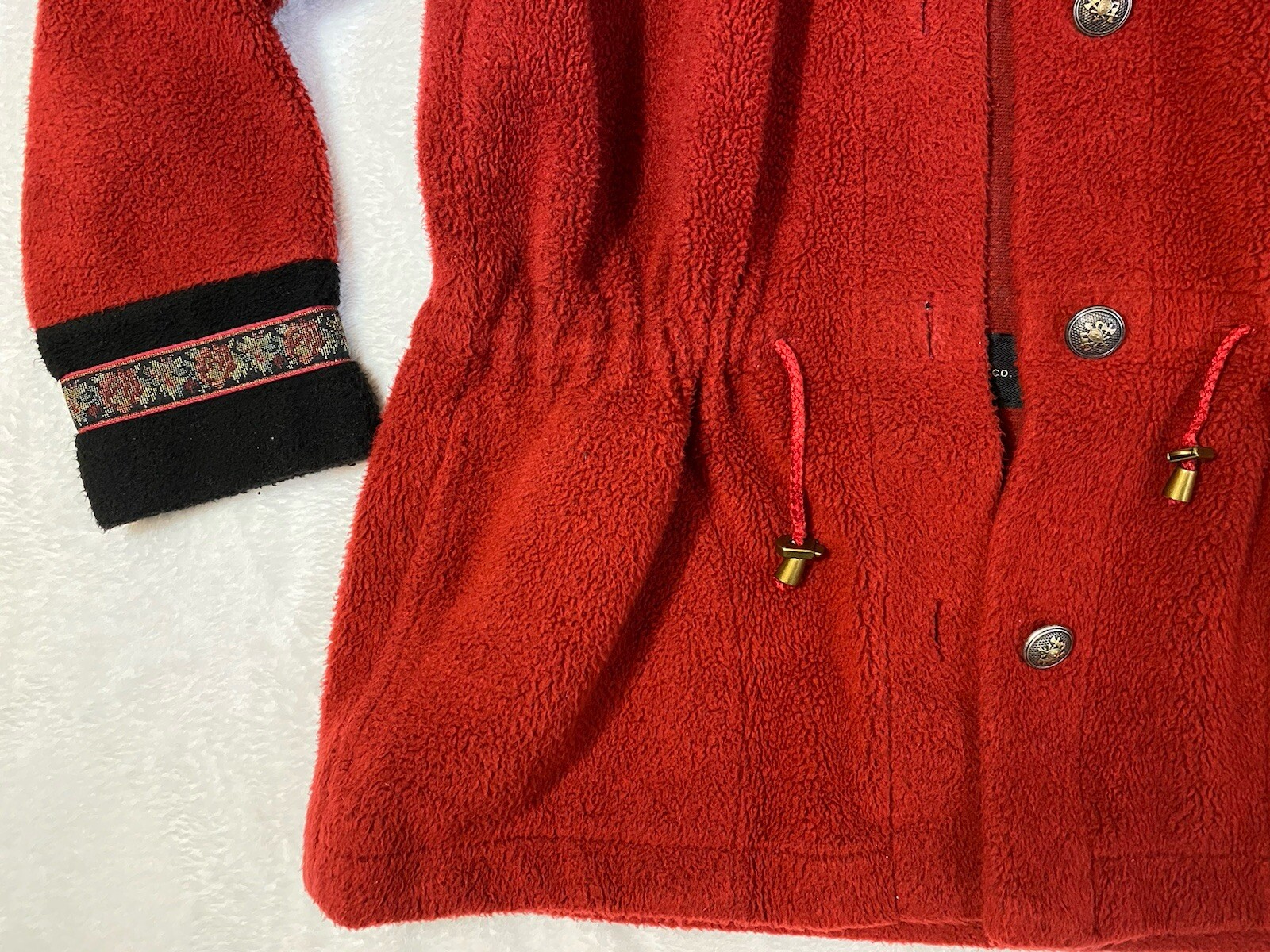 Womens County Clothing Co button up fleece jacket. Size medium, see pictures for measurements. Adjustable waist. In used, good condition!