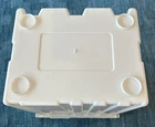 This vintage cream hinge lid laundry clothes hamper basket is an excellent addition to any home. Made of durable plastic material, it is suitable for holding clothes and other items. The hamper features a lid that helps to keep the contents inside safe and secure. It has a height of 17 inches and is designed by Festival, a trusted brand in the market. The laundry hamper is perfect for those who need a place to store their clothes and other items. The white color adds a touch of elegance to the hamper, making it a great addition to any room. The lid is easy to remove and replace, making it simple to access the contents inside. This item is perfect for anyone who needs a reliable and stylish laundry hamper.