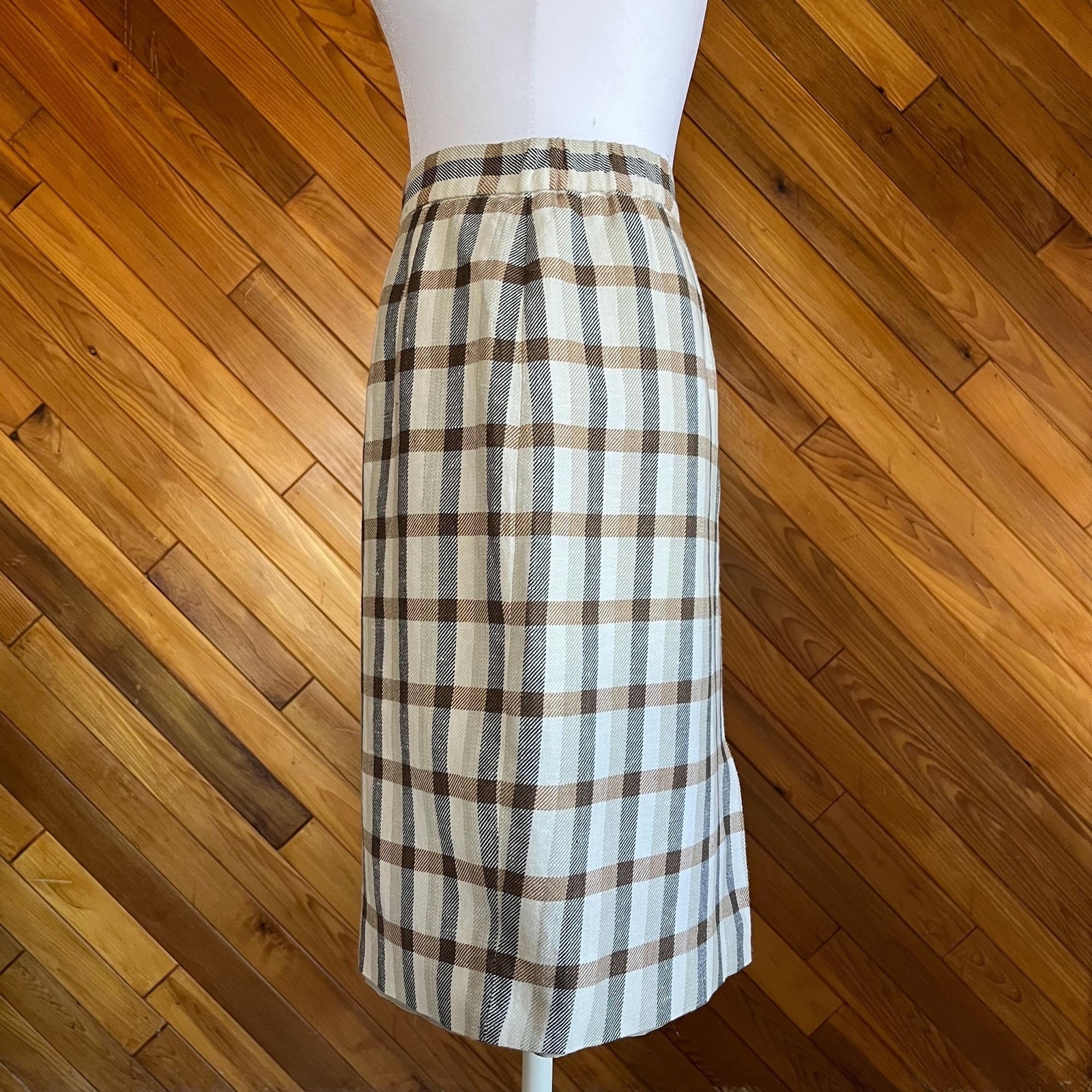 This cute pencil skirt is the perfect addition to your work or casual wardrobe. Light weight linen cotton blend and fully lined. Zip and button closure in the back with elastic on both sides of the waist for a little extra room. Condition: Excellent Flaws: None Brand: Harve Benard Materials: Cotton/Linen Please review measurements before purchasing and feel free to ask any questions. All sales are final. Open to reasonable offers. Measurements taken while flat: Waist: 32-34” Hips: 42” Length: 21”