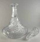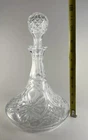 Vintage Crystal Floral Etched Ornate Cut Glass Ships Decanter Large 7.5” X 12”