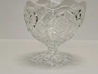 Add timeless sparkle to your collection with this beautiful vintage cut crystal footed dish, perfect for candy, nuts, or elegant dessert servings. This mid-century piece features a deeply cut geometric and floral pattern, a scalloped rim, and a faceted pedestal base that catches the light beautifully. Ideal for vintage decor, entertaining, or collectors of fine crystal Photos show condition from all angles. A stunning accent for any traditional, Hollywood Regency, or cottagecore-inspired interior.