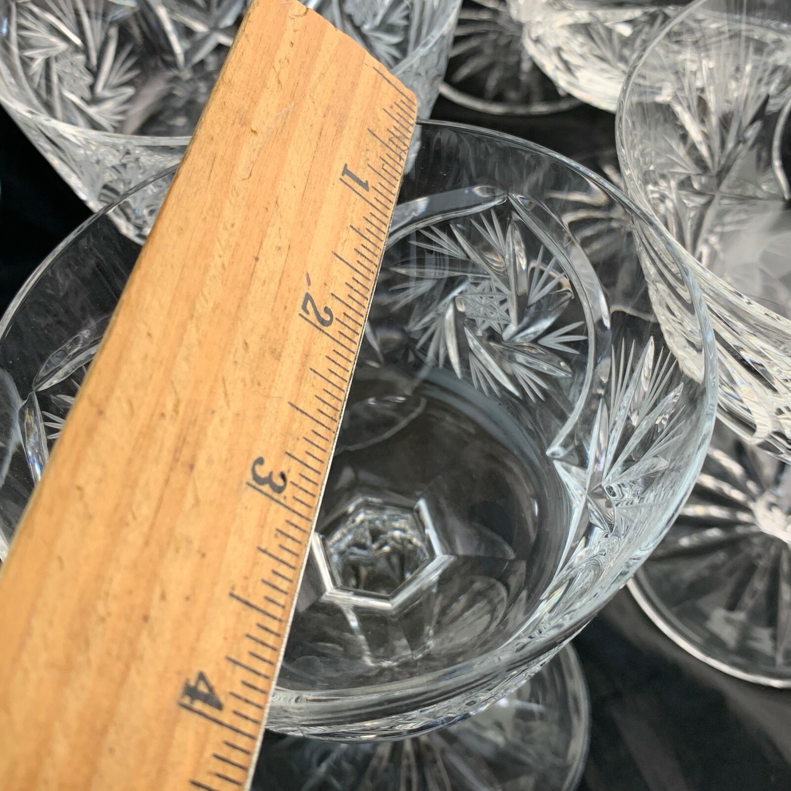 Vintage Cut Glass or Crystal Champagne Cocktail Starburst Stemware Set of 11 Elegant Pieces