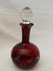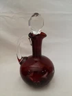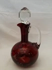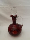 Vintage Czech Bohemian Ruby Red Cruet Crystal Syrup Dispenser Etched Flower. Beautiful Condition.