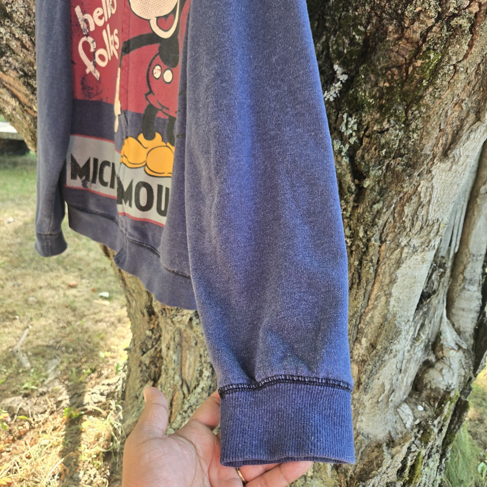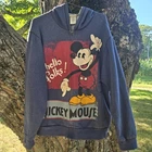 This Vintage Disney Store Mickey Mouse Hello Folks! Full Zip Size Large Retro Hoodie is a nostalgic piece of activewear with a cartoon theme and 90s retro style. Made from a blend of polyester and cotton, this hoodie features the iconic Mickey Mouse character with a graphic print and hooded design. The full zip closure and Crew Neck neckline make it easy to wear in all seasons, while the breathable material ensures comfort during various activities like gym training, walking, and running. Perfect for unisex adults who appreciate classic Disney characters and vintage style, this hoodie is a must-have for fans of Mickey Mouse and retro fashion.