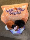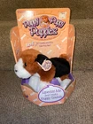 This vintage plush toy is a small beagle dog from the Puppy Puppy Puppies character family by DSI Toys, released in 2001. The toy is still in its original packaging, making it a new in box (NIB) collectible item. With its small size and squeaky feature, this adorable beagle is sure to delight fans of stuffed animals and collectors of nostalgic toys.
