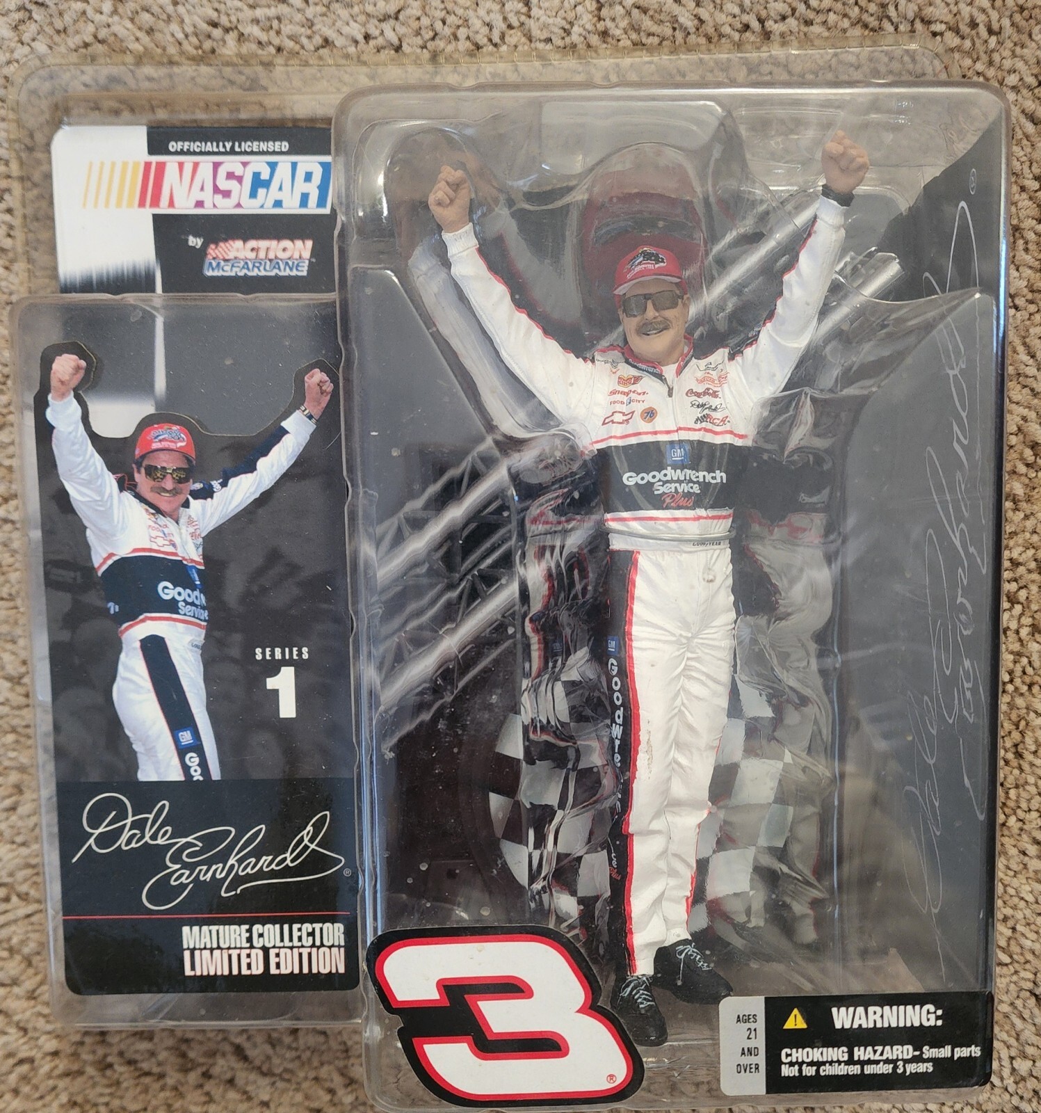 For all the NASCAR fans out there, this lot of Dale Earnhardt memorabilia is a must-have! The collection includes an officially licensed action figure of the legendary driver, along with other exclusive fan apparel and souvenirs. Show your support for Dale Earnhardt and the NASCAR league with these high-quality products, perfect for any auto racing enthusiast. Whether you're a collector or simply a fan of the sport, this lot is sure to impress. Action figure, photo book, license plate and frame, Steering Wheel Keychain. New in original packaging