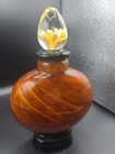 This vintage Dale Tiffany art glass perfume bottle is a stunning addition to any collection. The bottle features a beautiful amber and gold color combination with gold flecks, making it a unique piece. The exterior color is multicolor, adding to its charm. This perfume bottle is a must-have for collectors of modern (1900-Now) perfume bottles and is categorized under perfume, bottles, bottles & insulators, and collectibles. The brand is Dale Tiffany, a well-known name in the world of art glass. This bottle is perfect for display or as a functional perfume bottle. NR