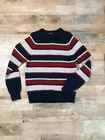 Vintage David Gregg Men Size Medium 100% Acrylic Red, Blue, Gray Striped Knit crew neck and very soft! Excellent Condition Pit to Pit: 17 inches Length: 27 inches Sleeve Inseam: 29 inches