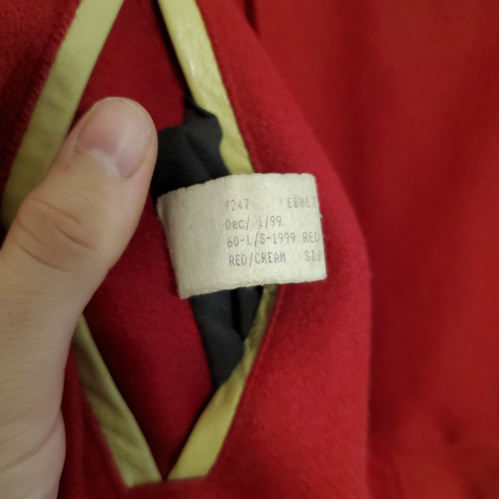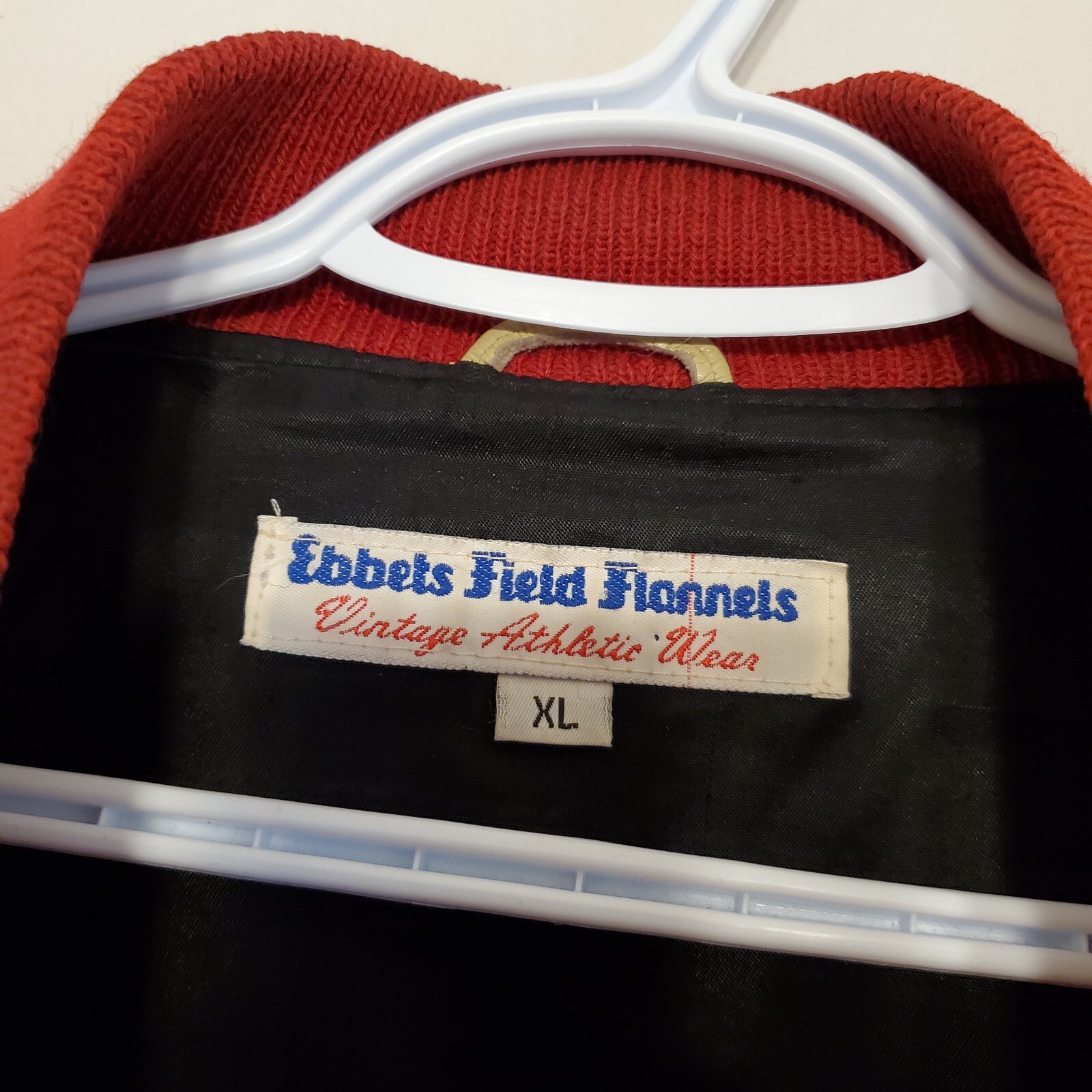Great shape, has some light marks on leather sleeves but they should come off with a cleaning or magic eraser. Dated 1999 on an ebbets field jacket 26.5" pit to pit 28" length