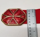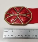 Vintage Day-Lor Belt Gold and Red Buckle Red Elastic Stretch 2" Wide 28" unstretched. Buckle and clasp shiny and in good condition. Red belt appears to still be very elastic. Happy to combine shipping if you buy multiple items.