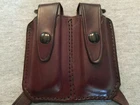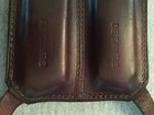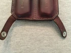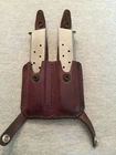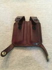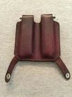 Vintage De Santis Leather Double Magazine Holder / Pouch Pre-owned in very good condition with few scratches/cracks. Study all pictures carefully as they are part of the description. Holds two single stack magazines which are included with the sale. Intended for a COLT 1911 style pistol. The magazines are unmarked except the bottom of each states "PAT. PENDING STAINLESS STEEL LAKA U.S.A." Dark brown leather holder has "DE SANTIS" etched into the back. FREE SHIPPING NO INTERNATIONAL SALES SHIPS TO CONTINENTAL USA ONLY