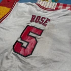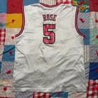 Fair/thrashed condition white reebok derrick rose bulls jersey Size XL, measures 24.5x31.5, good baggy bulls jersey y2k Multiple small flaws throughout, no major structural flaws