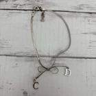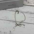 Product Detail This is a Christian Dior Ribbon Motif Logo Necklace, a perfect accessory for any fashion enthusiast. The necklace measures approximately 35 cm in total length. Please note that there may be slight discrepancies in measurements. This item was purchased from a second-hand store and exhibits some signs of wear and storage, such as minor scratches and stains. Despite being a pre-owned item, it retains the elegance and sophistication associated with the Christian Dior brand. The necklace comes with its original box, making it a great addition to any collection or a thoughtful gift for someone special. Shipping DHL or FedEx or Japan Post. International Buyers - Please Note: Import duties, taxes, and charges are not included in the item price or shipping cost. These charges are the buyer's responsibility. Please check with your country's customs office to determine what these additional costs will be prior to bidding or buying.