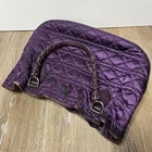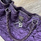 archival john galliano era dior charm bag some staining/discoloration purple quilted satin exterior with a braided leather handles