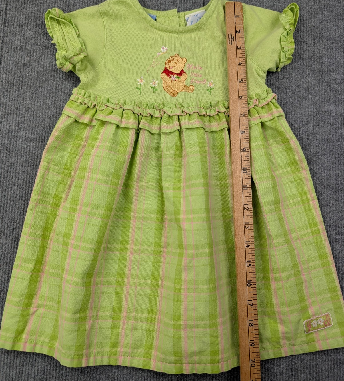 Brand: Disney Item Type: Dress Gender: Girls Size: 3T Color: Green / Light Green / Multicolor Pattern: Plaid Character: Winnie the Pooh Sleeve Length: Short Sleeve Features: Ruffle Trim, Embroidered Character, Lightweight Material: Cotton / Polyester Blend Closure: Pullover Season: Spring / Summer Country/Region of Manufacture: Macau Condition: Pre-owned