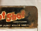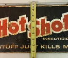 For sale is a vintage double-sided metal sign featuring the Hot Shot Insecticides brand. This sign has a distressed look and is perfect for collectors of vintage advertising memorabilia. It measures [insert dimensions here] and is made of durable metal. The Hot Shot Insecticides sign is a great addition to any collection and adds a touch of nostalgia to any room.