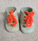 These are old. The Dolshoe brand shoes are fragile and have some damage as shown by photos. The Cinderella brand Mary Jane's are in good condition but need some cleaning.