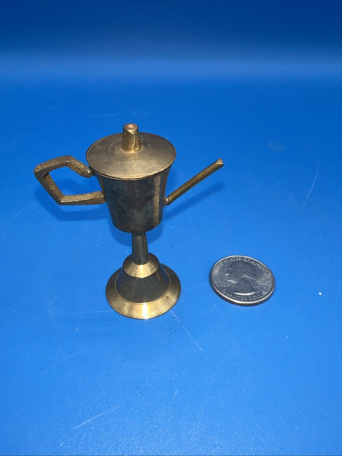 Vintage Brass Dollhouse Miniature Lidded Pitcher Made In India 1.5” H Decor