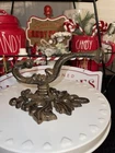 Beautiful excellent condition Double Hook Coat Hat Cast Iron Decorative piece. Has a black brown color.