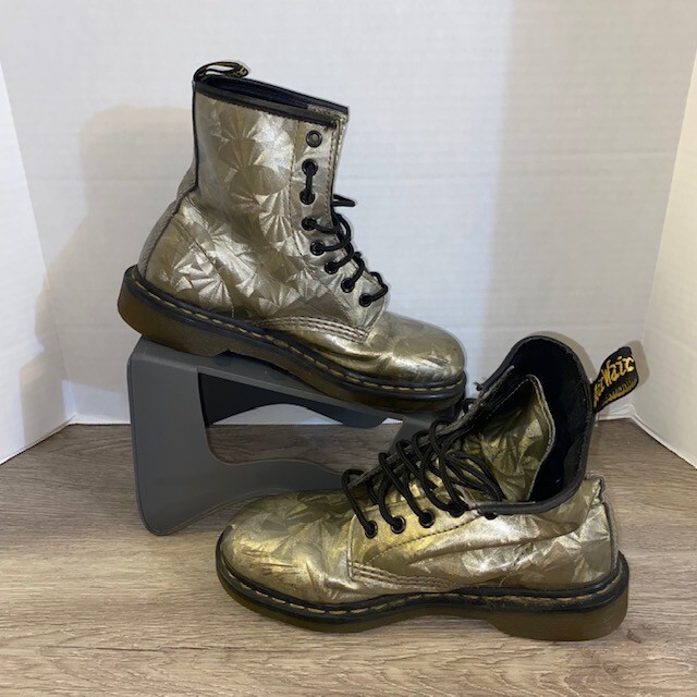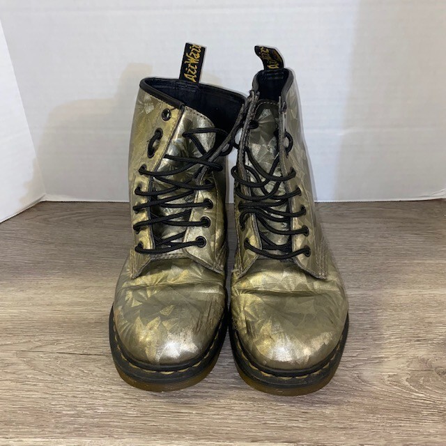 RARE Doc Dr Martens 1460 Metallic Patterned Combat Boots Women's Size 7 Some scuffing on fronts of boots. See photos.