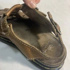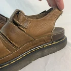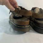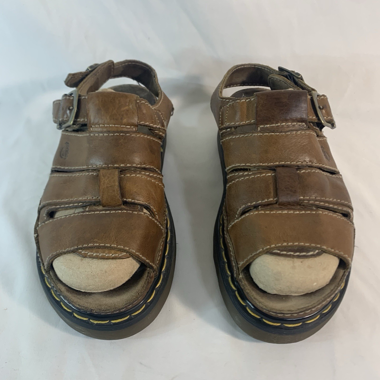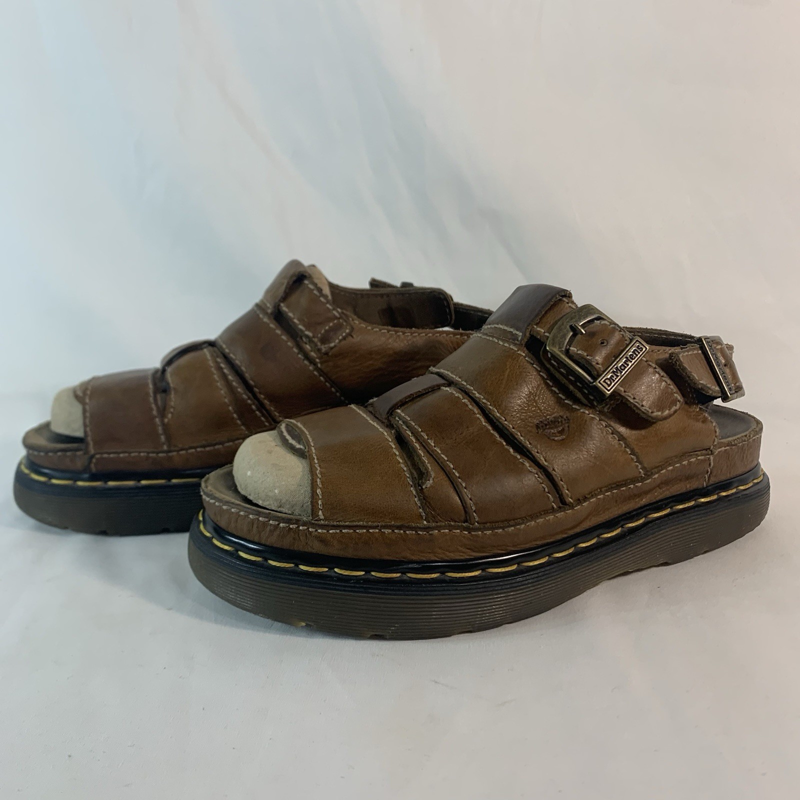 The Vintage Dr Martens 9155 Chunky Sandals in Fisherman Brown Leather are a stylish and comfortable choice for women size 10 US (11 UK). These solid brown sandals feature a classic buckle closure and adjustable strap, perfect for casual or travel occasions. With a chunky flat sole and standard shoe width, they offer all-day comfort and are designed to last. The grunge, Y2K and 90s theme adds a unique touch to these iconic Dr. Martens sandals, making them a versatile addition to any wardrobe. Some wear, loose stitches and heel drag noted in pictures. See photos for details and condition. Nice sandals!