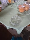 This Vintage EAPG Clear Pressed Glass 3 Section Divided Pickle Relish Serving Dish features a round shape with a glossy finish. Made of glass, this decorative dish includes three compartments perfect for serving various condiments or snacks. The vintage piece is an original divided dish with a capacity for 3 sections, showcasing a production style of pressed glass and a fused glass production technique. The dish is embellished with a decorative design, making it a charming addition to any table setting.