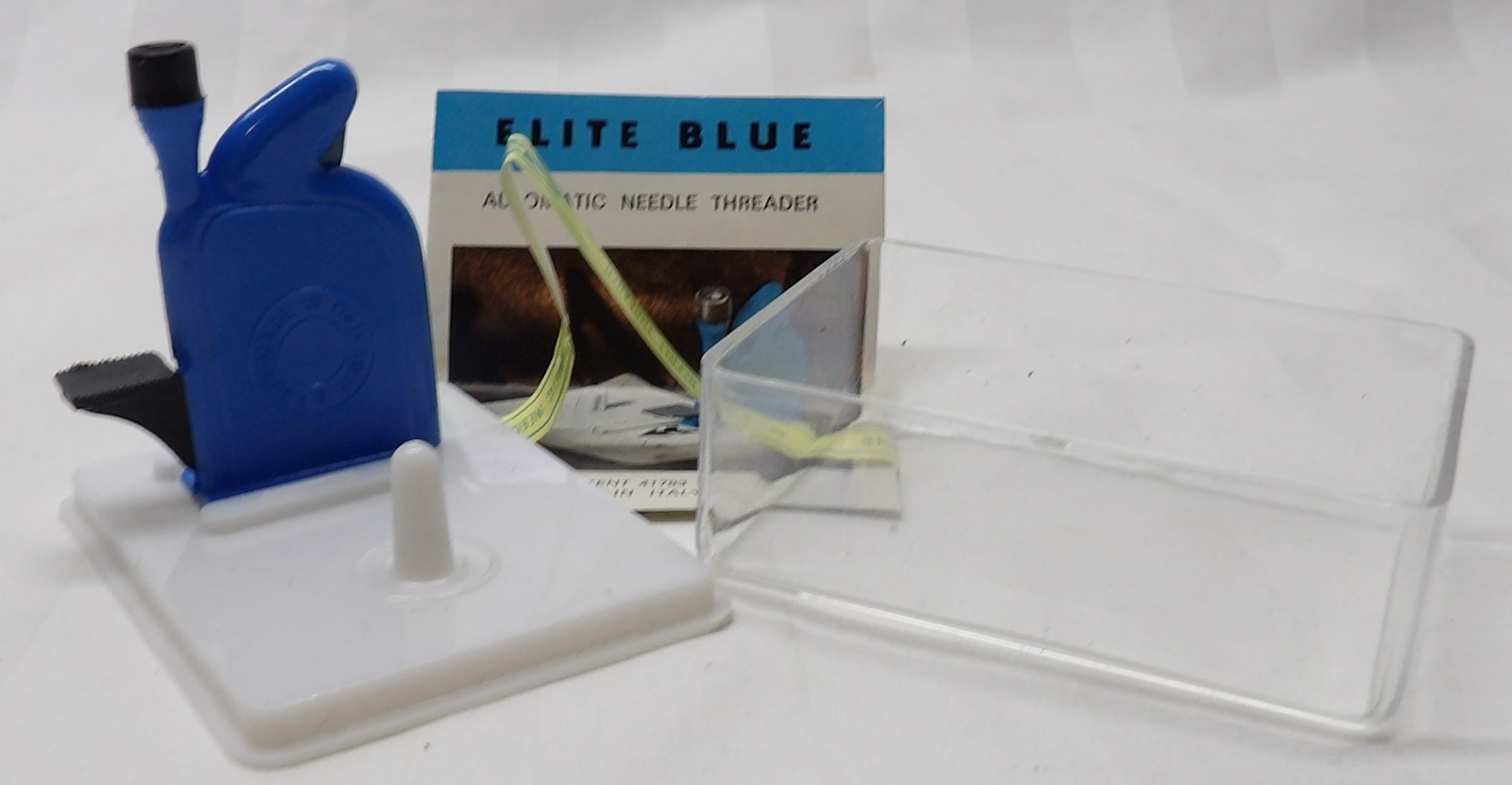 Vintage ELITE BLUE Automatic Needle Threader Made in Italy Preowned in the original case - complete w/ instructions in good condition. Please see photos for more details. BIN 6A147