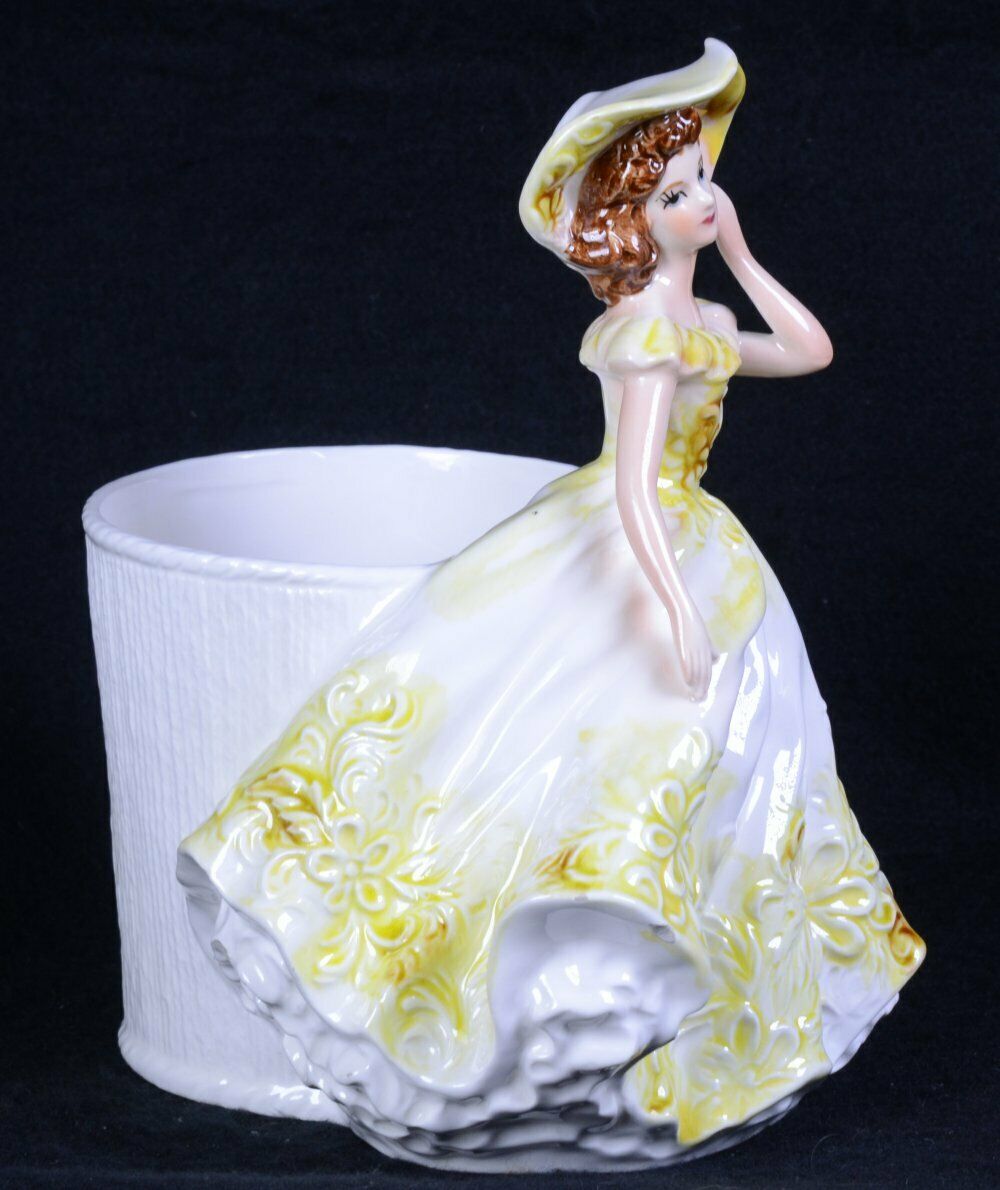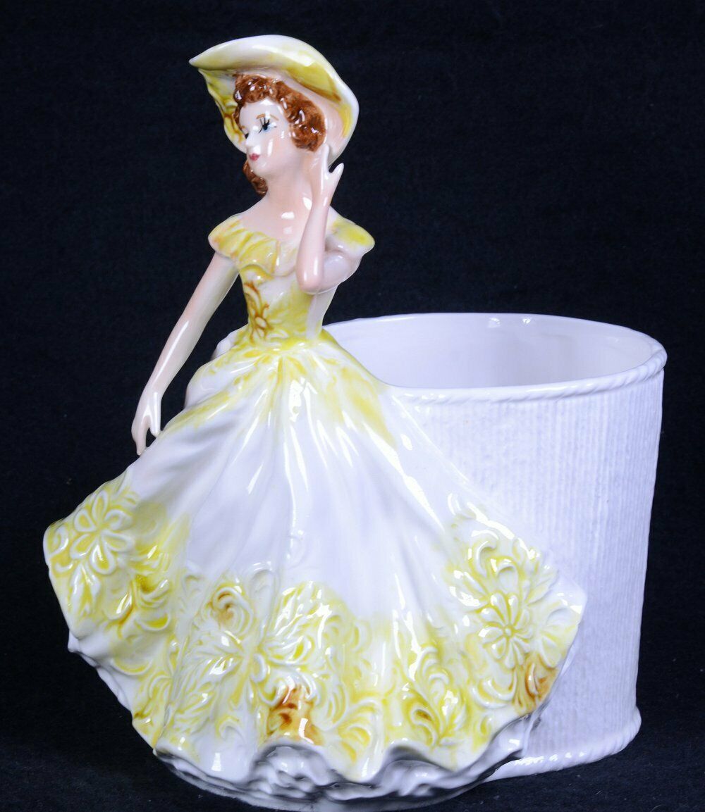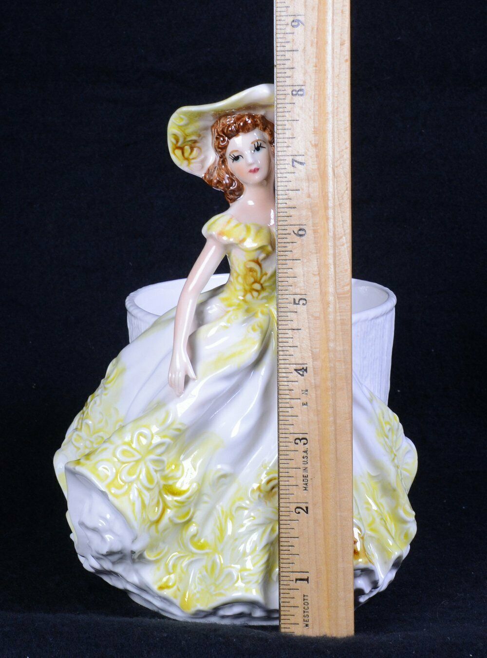 We are offering this Vintage ENESCO #E-7294 Lady PLANTER Yellow / White Gown & Hat Approximate Size: 8"H x 6"W x 4.25"D Condition: EXCELLENT CONDITION with No Chips, Cracks or Crazing We are selling an Estate comprised of thousands of Collectibles. Our knowledge may be limited on some things, otherwise what we have learned we have found online. *Please note that you are buying these Items "As Found" and "As Is". These items are in varied stages of condition and age, please examine the photos provided for a detailed assessment, and bid accordingly. We use an expert packaging company who will double box your items for safe arrival to your destination. (UNFORTUNATELY WE ARE UNABLE TO OFFER FREE SHIPPING TO: Hawaii, Alaska and the US Territories, we will credit the domestic shipping costs towards a shipping quote to these areas)