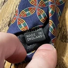 The vintage Burberry silk tie buckles are a luxurious designer accessory for men. Made in England from 100% silk satin, these geometric patterned neckties are a classic addition to any formal or stylish outfit. The multicolor design adds a pop of sophistication, perfect for those looking to make a designer statement. With its timeless charm and high-quality craftsmanship, these Burberry ties are a must-have for any fashion-conscious gentleman.
