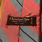 This vintage Christian Dior silk striped tie is a classic accessory for men, Made in the USA with 100% silk material. The tie features a designer preppy style with a multicolor striped pattern, perfect for adding a touch of sophistication to any outfit. With its short length of 56 inches and classic width of 3 inches, this high-quality necktie is a timeless piece that showcases the luxury and craftsmanship of Christian Dior. 56” long by 3” wide at the blade.