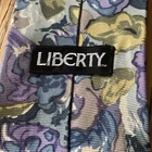 This Vintage EUC Liberty Floral Silk Tie is a classic men's accessory made in Japan. The tie features a beautiful multicolor floral pattern, crafted from 100% silk satin fabric. With a designer style and preppy theme, this tie exudes a sense of sophistication and timeless elegance. The vintage nature of the tie adds a touch of nostalgia and uniqueness to any outfit, making it a standout piece in any gentleman's wardrobe.
